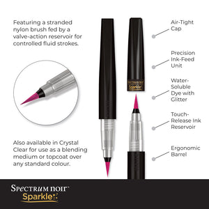 An update to Spectrum Noirs popular original Sparkle Brush Pens, these pens are packed with fine glitter micro-pigment, in a range of vivid and blendable water-based colours.