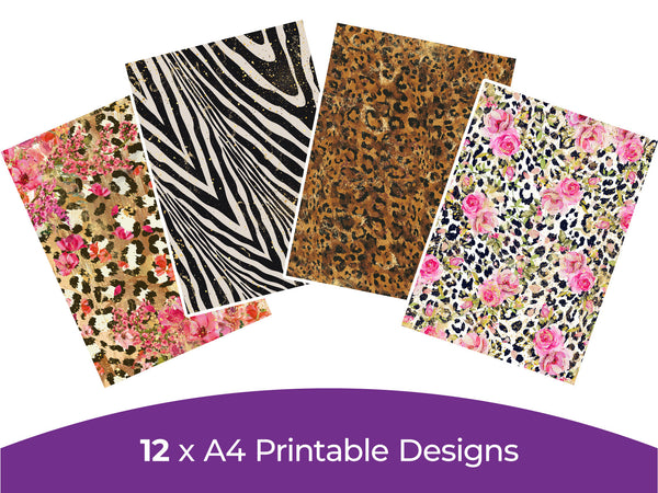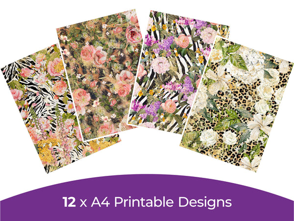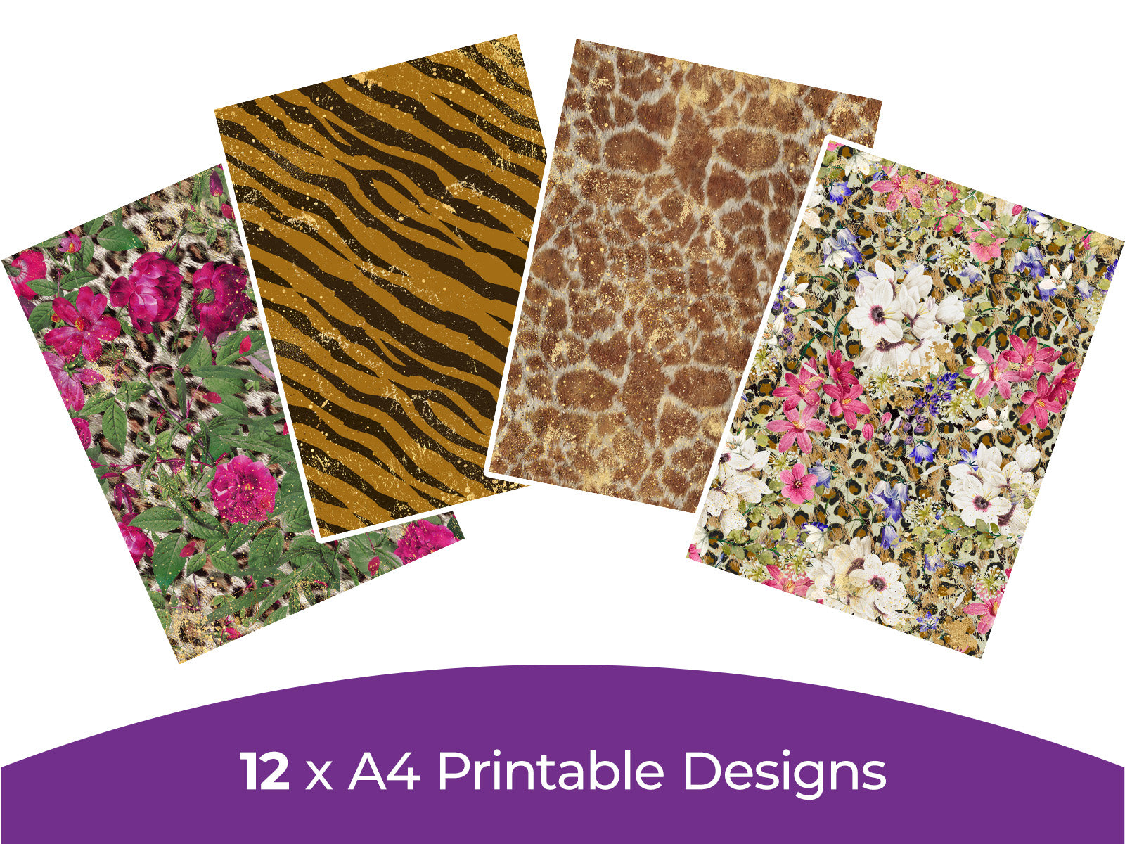 The Wild at Heart Digital Paper Pad includes 12 designs, packed with animal prints, exotic blooms, and vibrant colours, perfect for adding a look of wild glamour to your next handmade craft or project.