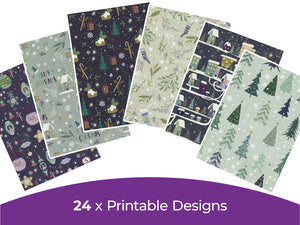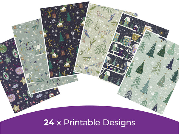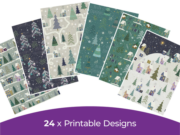Add a touch of modern festive style to your makes with the Winter Solstice Digital Paper Pad. Packed with 24 stunning designs, this collection features snow-dusted homes, frosted trees, twinkling stars and beautiful baubles. The colour palette of pine green, teal, sage and midnight blue sets a snug, wintry mood.